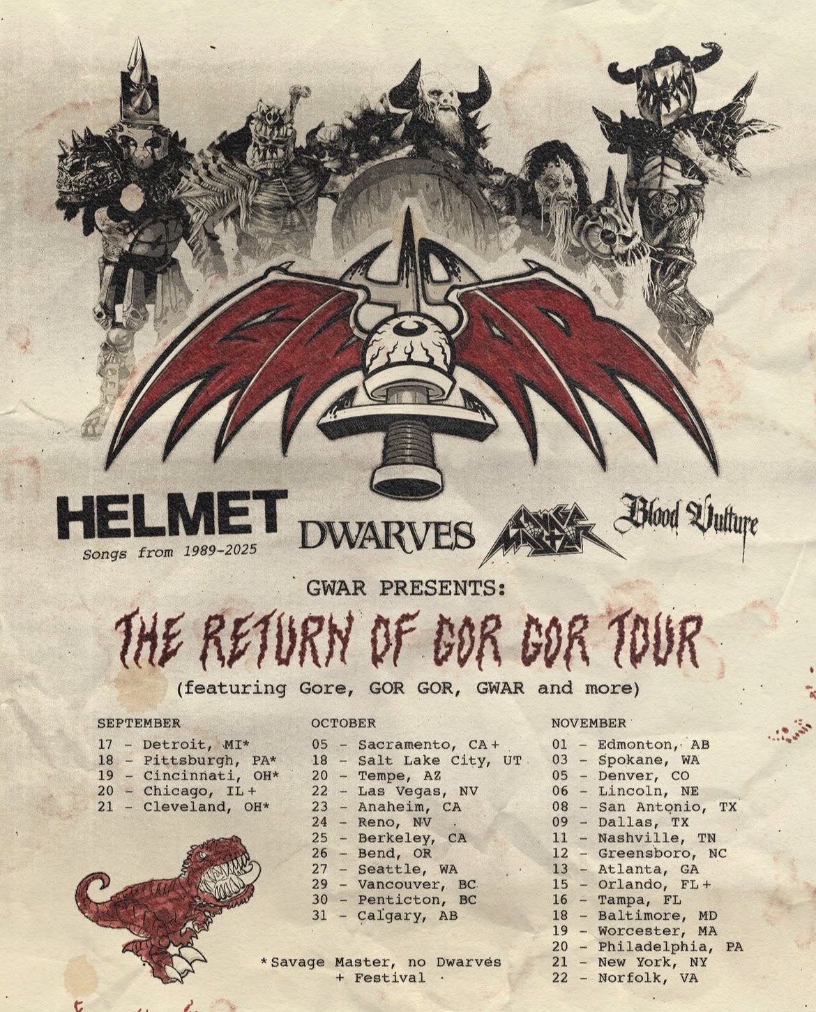 October- November catch the Dwarves at Punk in the Park SAN PEDRO CA then on tour w- GWAR & HELMET ALL OVER THE US AND CANADA (ticket links here)!